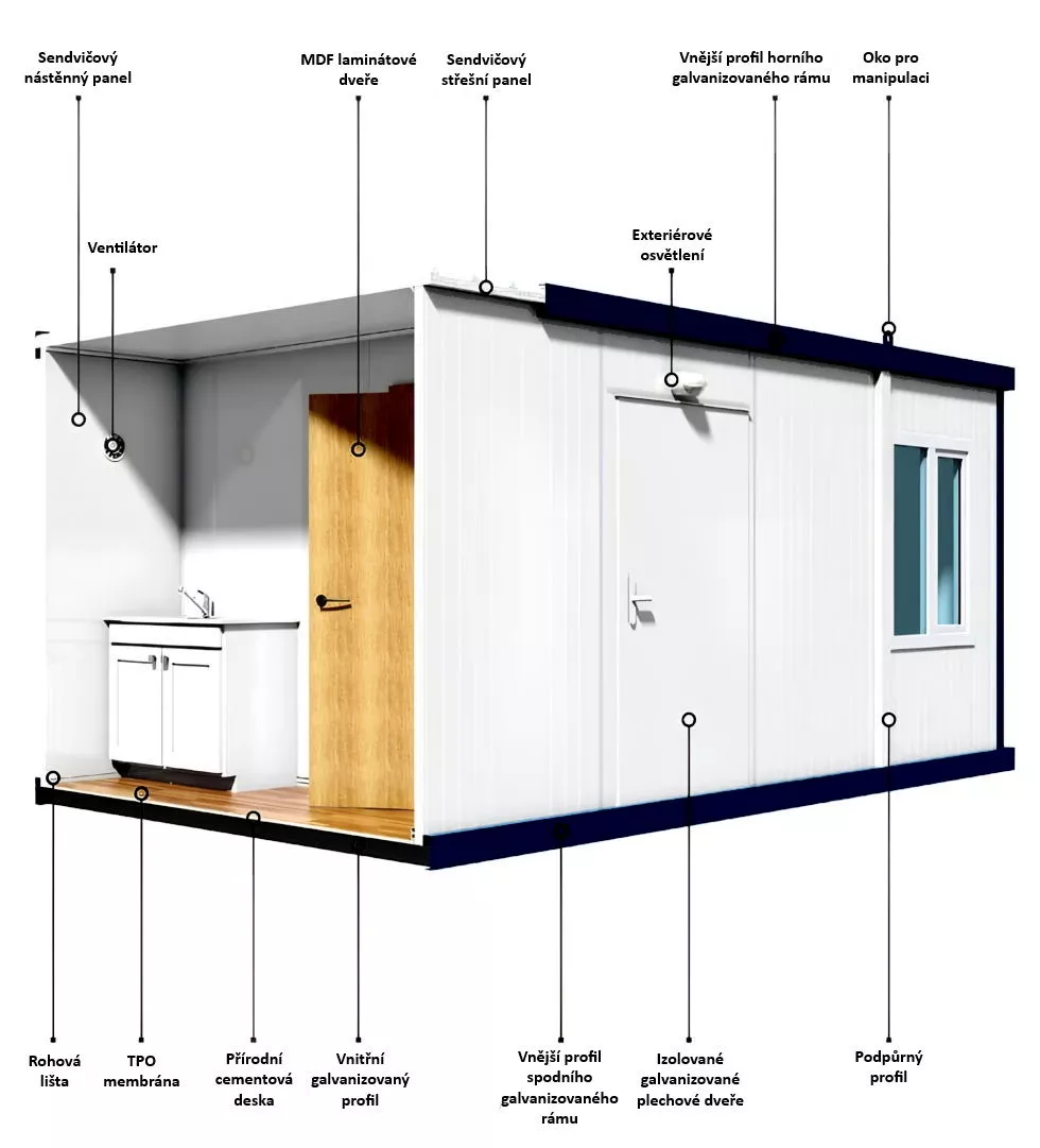Moderní bydlení za zlomek ceny tradičního domu. Rychlá realizace, celoroční komfort a možnost rozšíření.