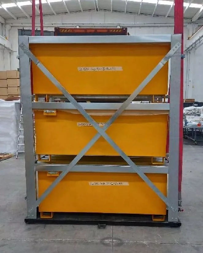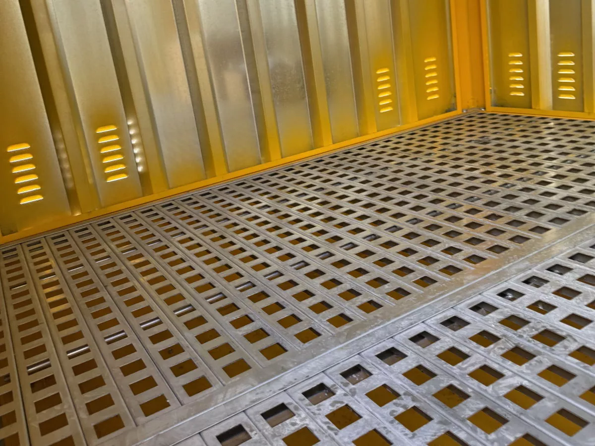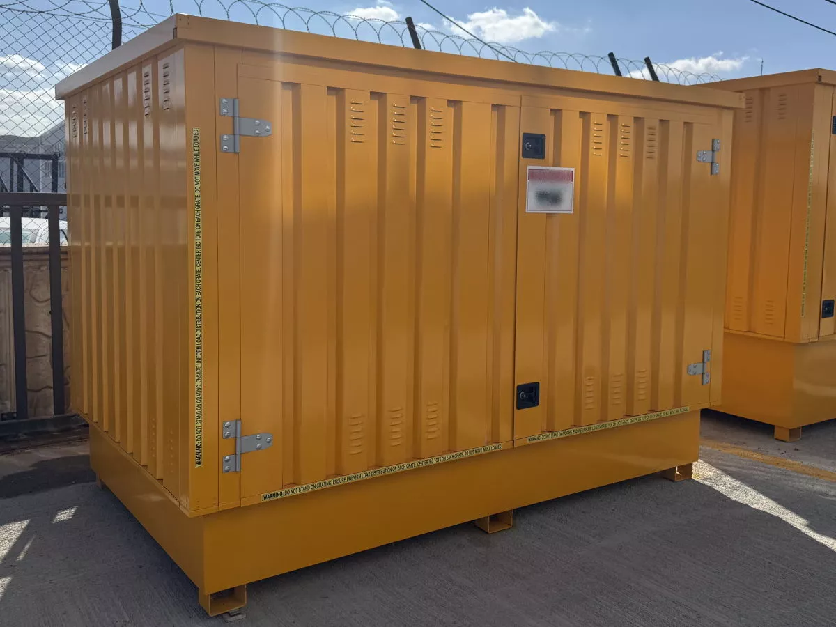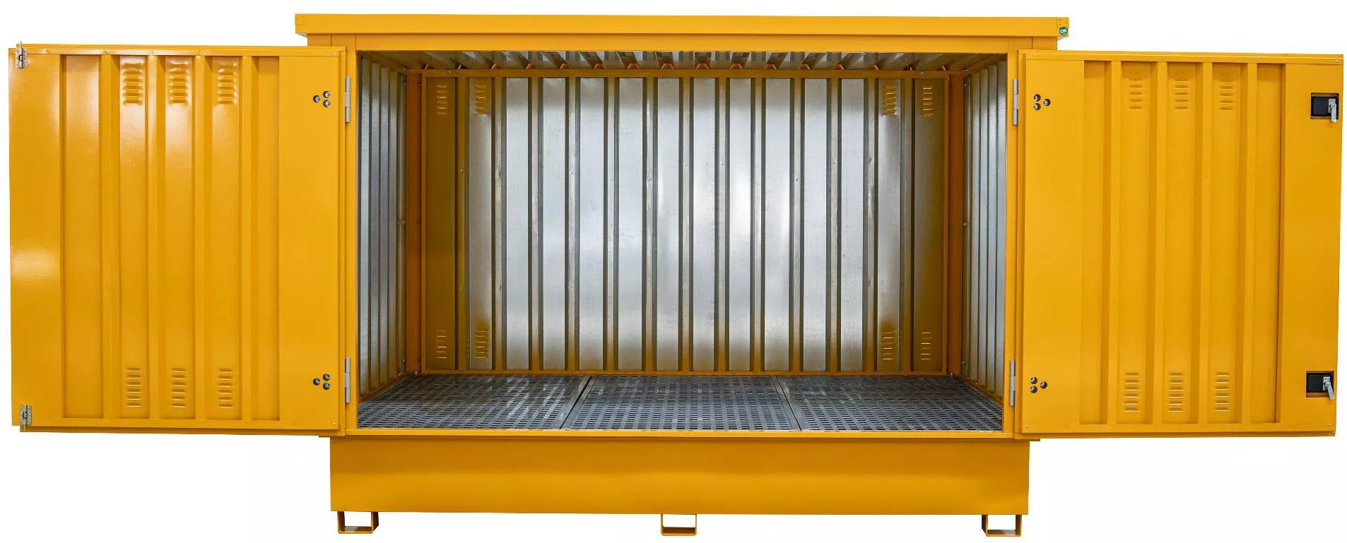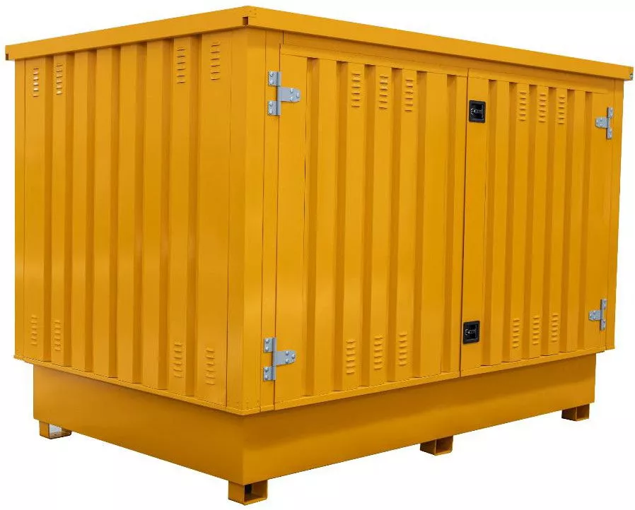 Tento vylepšený zásobník na kapaliny nabízí větší vanu a dvojité dveře, které zajišťují lepší přístup a kapacitu. Je speciálně navržen tak, aby se do něj vešly dvě samostatné nádrže IBC, takže je ideální pro skladování větších objemů kapalin. Nepropustná jímka s mřížkou zajišťuje bezpečnost v případě rozlití, zatímco větrací otvory v panelech podporují cirkulaci vzduchu. Tento kontejner kombinuje funkčnost a pohodlí a nabízí efektivní řešení skladování pro podniky, které potřebují manipulovat s více nádržemi IBC.