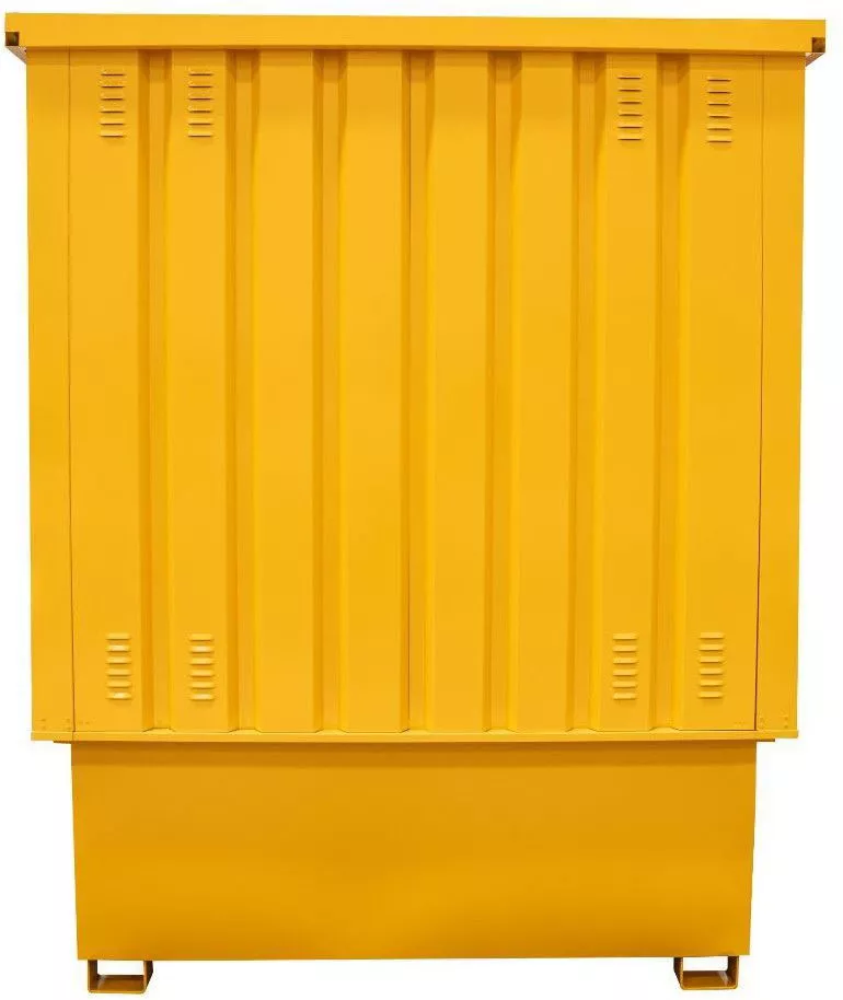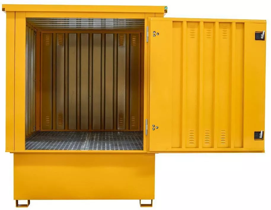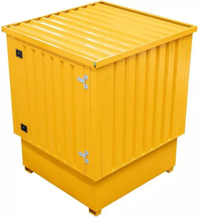 Tento kontejner je alternativní verzí jednotky pro skladování chemikálií, která má výrazně větší vanu určenou pro bezpečné uložení většího množství kapaliny. Je vybaven velkými jednoduchými dveřmi pro snadný přístup a je speciálně navržen pro skladování jedné jediné nádrže IBC. Stejně jako původní model obsahuje nepropustnou jímku s mřížkou a větracími otvory pro správnou cirkulaci vzduchu, což zajišťuje bezpečné a účinné skladování. Jednotka Single-IBC poskytuje praktické řešení pro bezpečnou a organizovanou manipulaci s velkými nádobami na kapaliny.