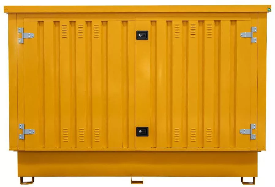 Tento vylepšený zásobník na kapaliny nabízí větší vanu a dvojité dveře, které zajišťují lepší přístup a kapacitu. Je speciálně navržen tak, aby se do něj vešly dvě samostatné nádrže IBC, takže je ideální pro skladování větších objemů kapalin. Nepropustná jímka s mřížkou zajišťuje bezpečnost v případě rozlití, zatímco větrací otvory v panelech podporují cirkulaci vzduchu. Tento kontejner kombinuje funkčnost a pohodlí a nabízí efektivní řešení skladování pro podniky, které potřebují manipulovat s více nádržemi IBC.